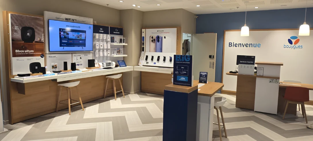 Thiers : ouverture d’une boutique Bouygues Telecom 15 octobre 2025 Partager l’article Copier le lien Copié S'ouvre dans un nouvel onglet: Partager l’article par E-mail S'ouvre dans un nouvel onglet: Partager l’article sur Facebook S'ouvre dans un nouvel onglet: Partager l’article sur X S'ouvre dans un nouvel onglet: Partager l’article sur WhatsApp Bonne nouvelle pour les habitants du Puy-de-Dôme ! Bouygues Telecom a ouvert une toute nouvelle boutique à Thiers, au Centre Commercial Carrefour (13 rue François Truffaut, 63300 Thiers). Située à l’entrée de la galerie marchande, cette boutique de 44 m² vous accueille dans un cadre moderne et convivial idéal pour découvrir les dernières innovations technologiques dans les meilleures conditions, changer de smartphone, ou encore bénéficier d’un accompagnement personnalisé. Cette nouvelle boutique est ouverte du lundi au samedi, de 9h30 à 19h, sans interruption. Un espace moderne et accueillant Avec une large surface de 44m², cette boutique est un véritable lieu de conseils et d’échanges. Au sein d’un espace chaleureux et accueillant, les Thiernoises et Thiernois peuvent découvrir et tester par eux-mêmes une large gamme de produits et accessoires en conditions réelles. Vous y retrouverez notamment : Une sélection de smartphones 4G et 5G neufs ou reconditionnés ; Une grande variété d’accessoires dernier cri comprenant des casques audio, écouteurs sans fil, montres connectées, coques de protection pour smartphone, protège-écran, objets connectés, chargeurs, batteries, et bien plus encore ! Notre gamme de services fixe et mobile (pack BiG avec box + forfaits à composer, réparation, reconditionnement, solutions de contrôle parental, etc.). Nos conseillers de vente sont là pour vous aider Vous souhaitez un renseignement sur nos forfaits, tester votre éligibilité à la fibre, obtenir des informations sur nos dernières offres ou encore choisir votre prochain smartphone ? Djibril et son équipe se tiennent à votre disposition pour vous accueillir et vous conseiller. N’hésitez pas à leur rendre visite et profitez de leurs conseils personnalisés. Trouvez la boutique Bouygues Telecom la plus proche de chez vous ! Rechercher Ces articles pourraient vous intéresser Nos boutiques Ouverture de la plus grande boutique Bouygues Telecom près de Nantes Nos boutiques Vos boutiques Bouygues Telecom ouvertes les dimanches de fin d’année ! Nos boutiques Ouverture d’une boutique Bouygues Telecom à Mende !